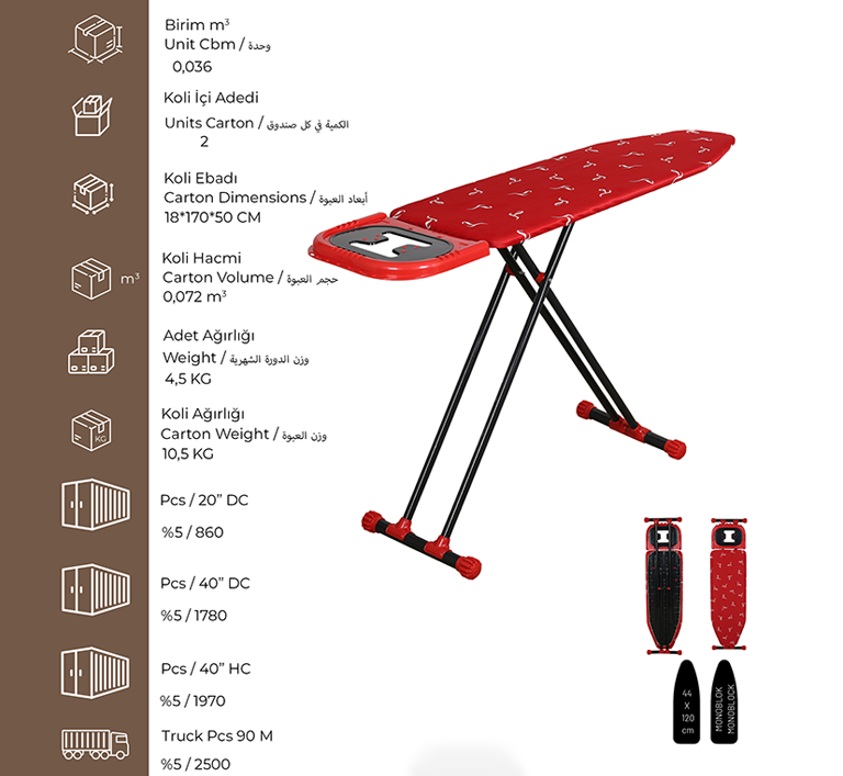 • Ütülemeyi Kolaylaştıran Özel Tasarım Yanmaz Silikonlu Ütülük 2 Yıl Garanti